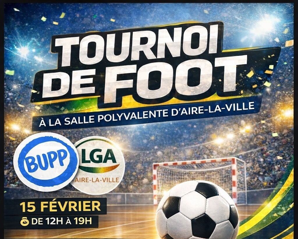 Le groupe de jeunes du local en gestion accompagnée (LGA) d’Aire-la-Ville et le BUPP sont heureux de vous annoncer l’organisation d’un tournoi de foot, dans la salle polyvalente d’Aire-la-Ville, le dimanche 15 février 2026.